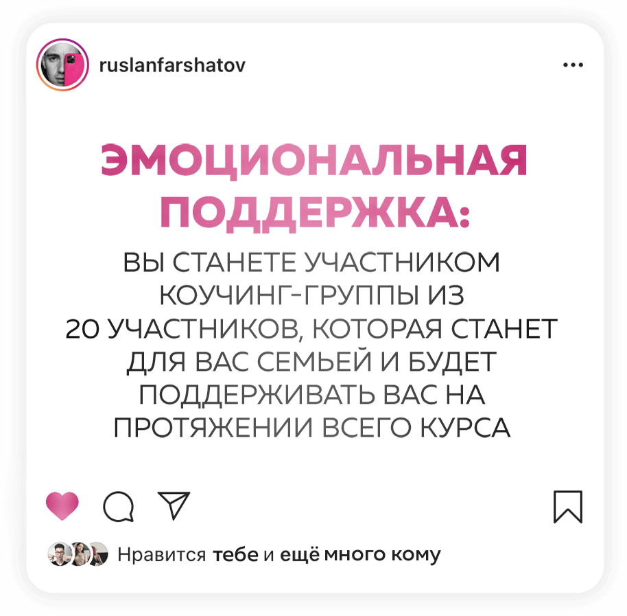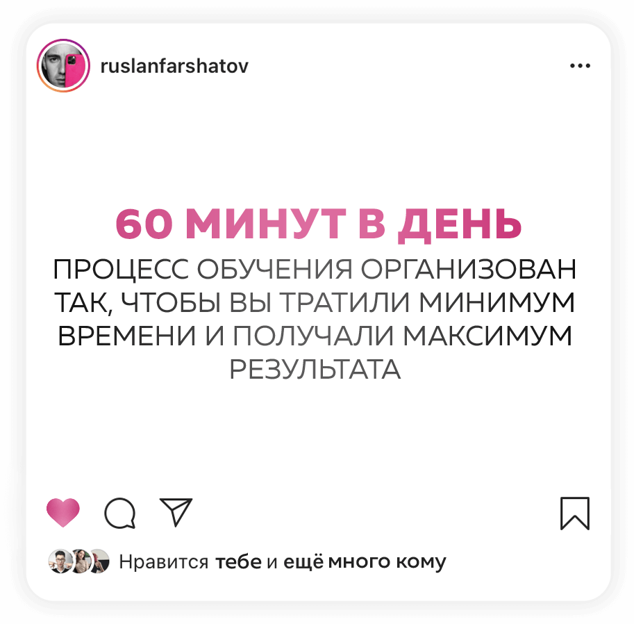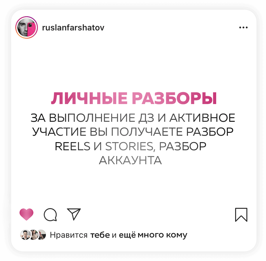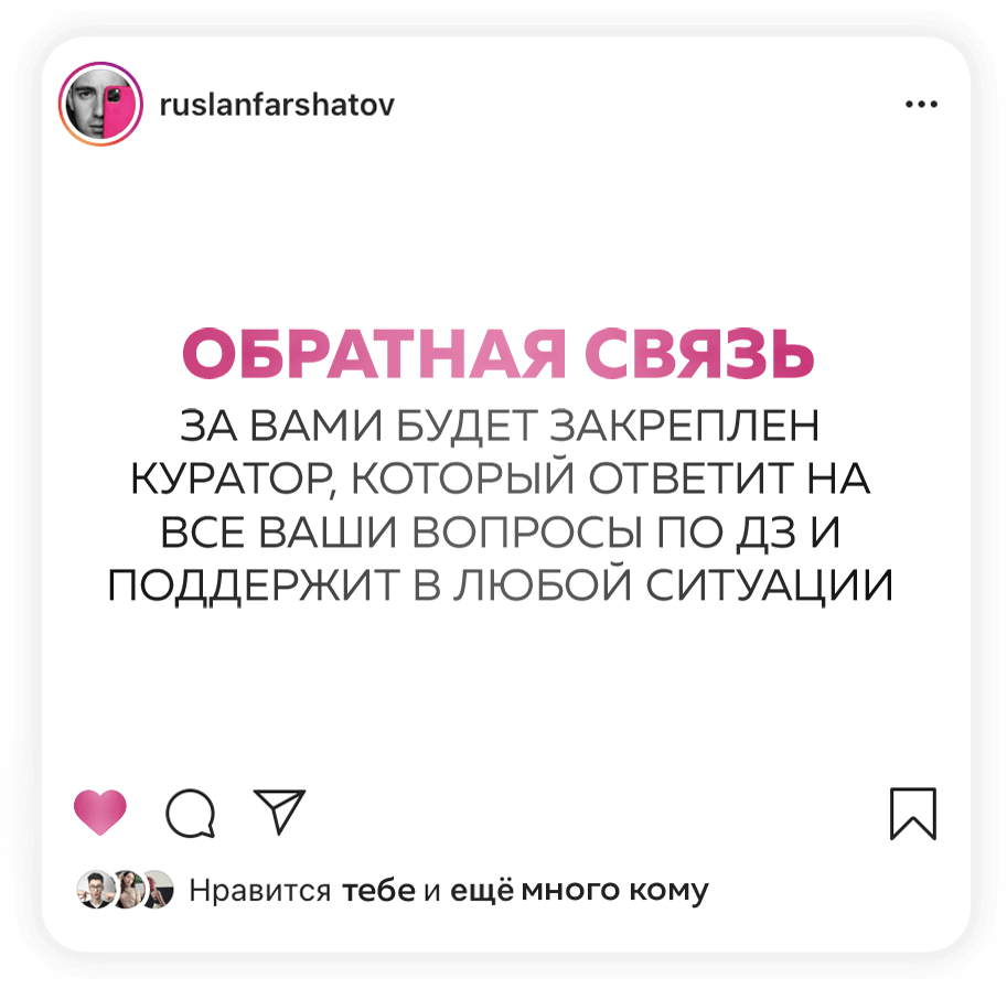 Если вы выполняете все ДЗ, добросовестно и в срок, то можете окупить курс ещё до его завершения. Потому что, если вы продвигаете аккаунт услуги и товары, то применяя мои инструменты, будете делать продажи минимум в 2-3 раза больше. А ещё есть партнерская программа ,и работает она без вашего участия: вы снимаете классный контент, у вас спрашивают «Где ты научился?» вы даёте ссылку, все!))