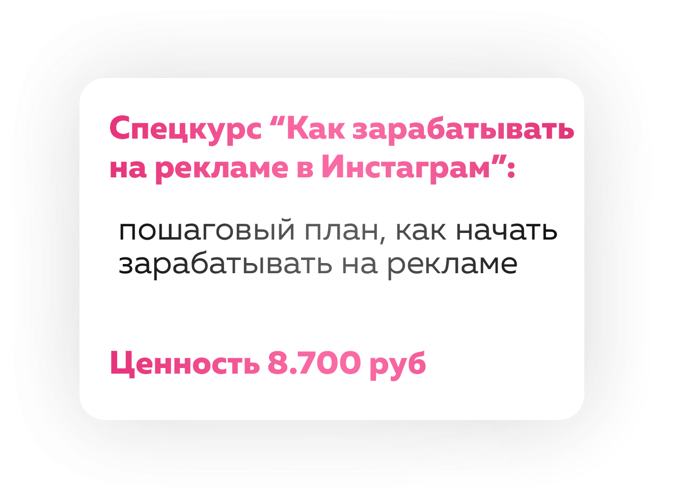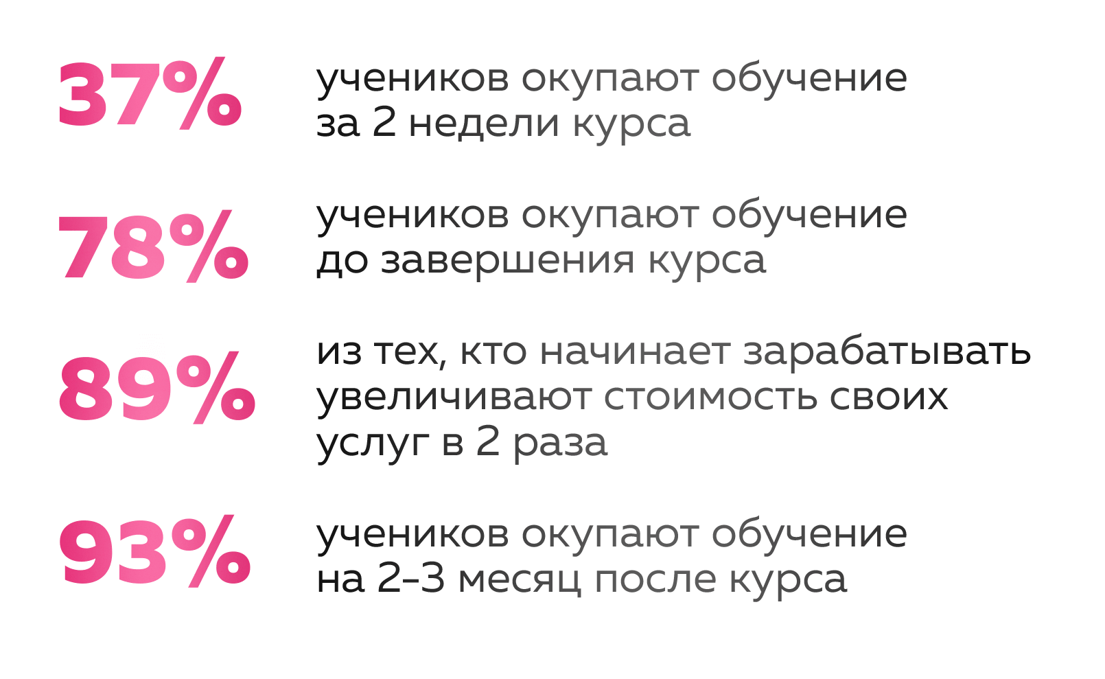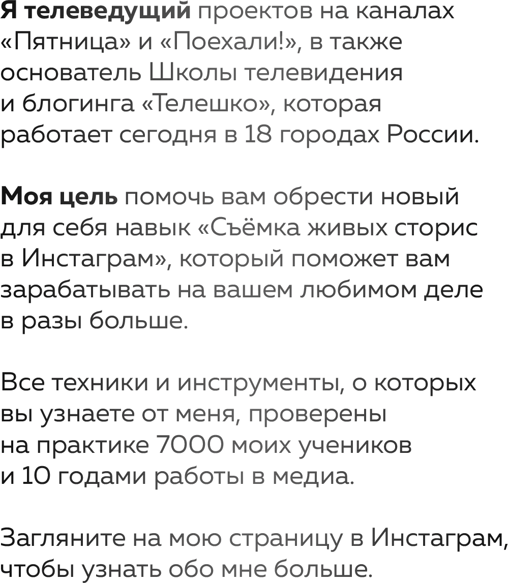 Если вы выполняете все ДЗ, добросовестно и в срок, то можете окупить курс ещё до его завершения. Потому что, если вы продвигаете аккаунт услуги и товары, то применяя мои инструменты, будете делать продажи минимум в 2-3 раза больше. А ещё есть партнерская программа ,и работает она без вашего участия: вы снимаете классный контент, у вас спрашивают «Где ты научился?» вы даёте ссылку, все!))